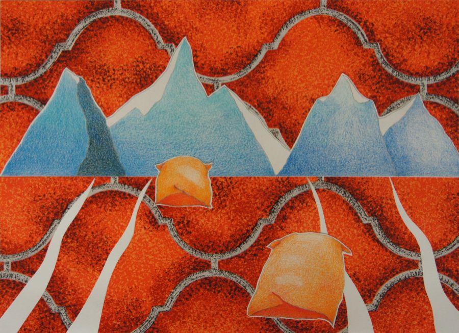 Techniques mixtes, fusain, crayons de couleurs, pastels.