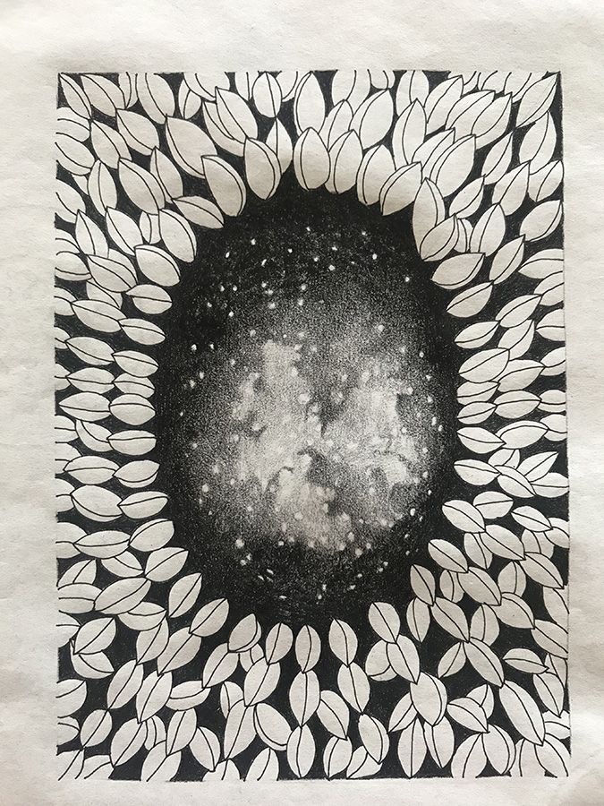 crayons et feutre noir.