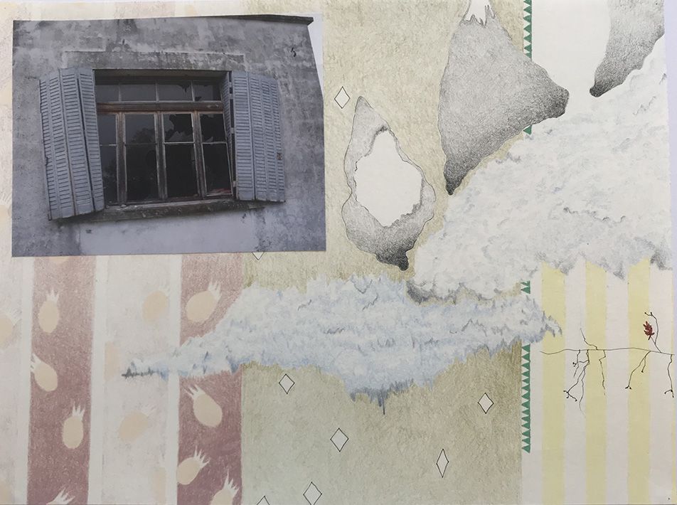 photo, crayons, feutre noir.
