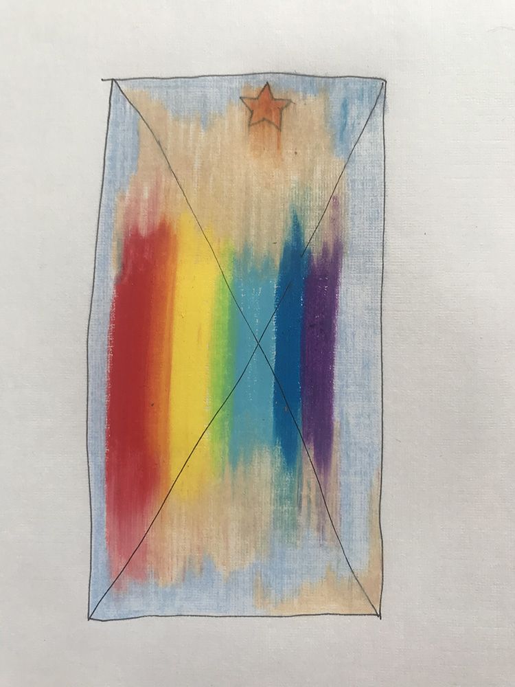 crayons, bâtons de pastel, feutre noir.