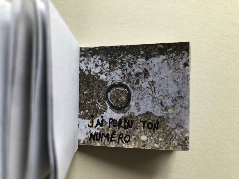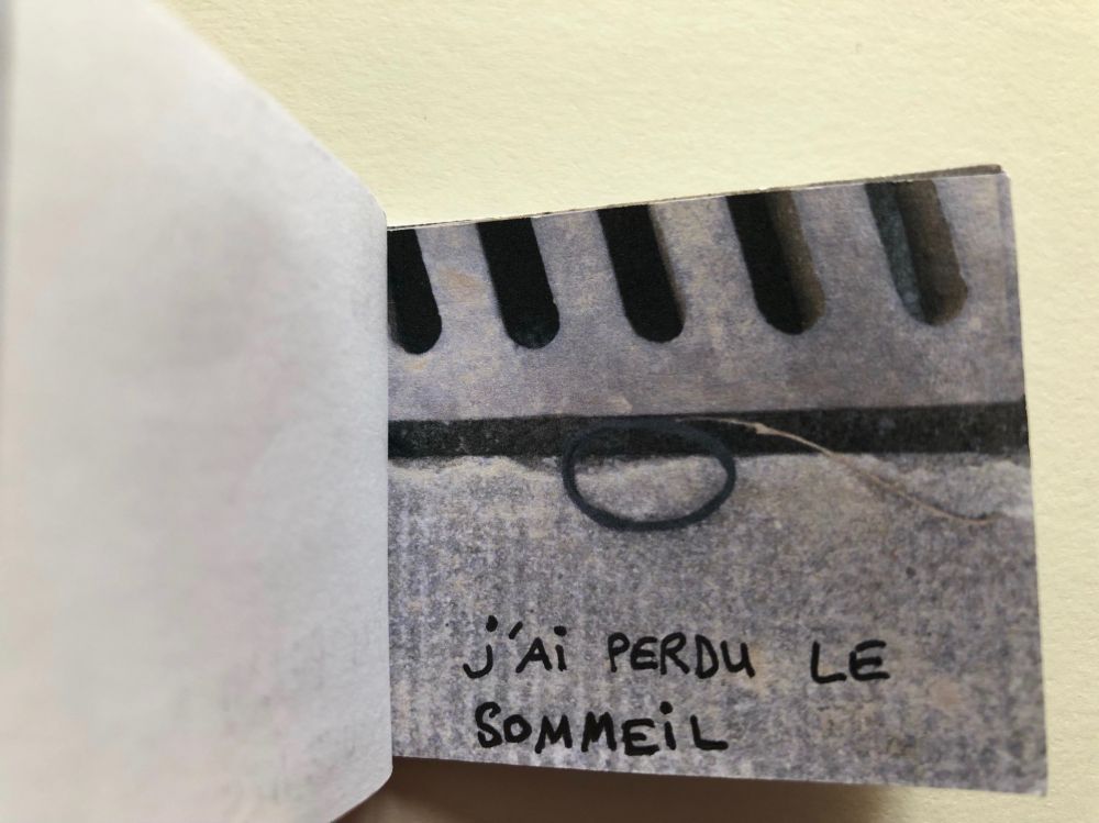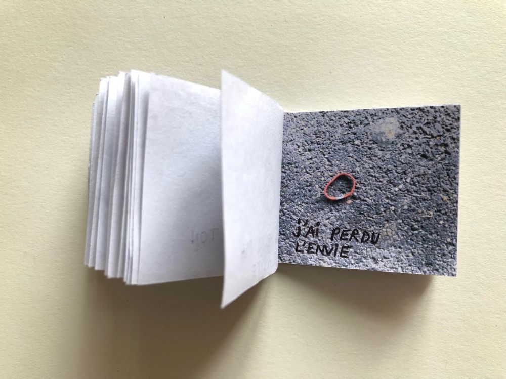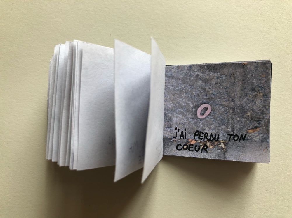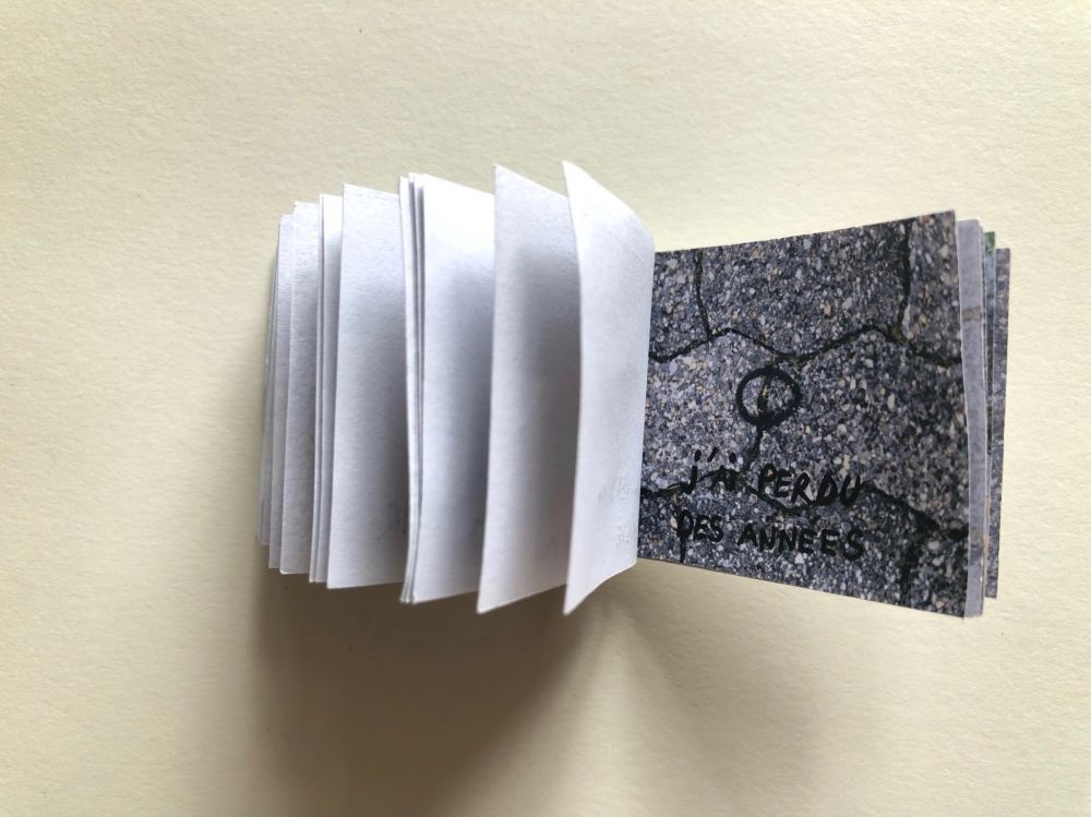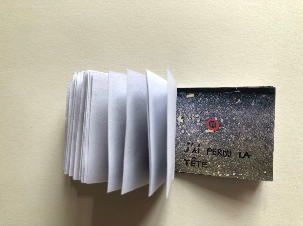 Cahier composé de 47 photographies reliées entre elles avec du fil et du scotch.