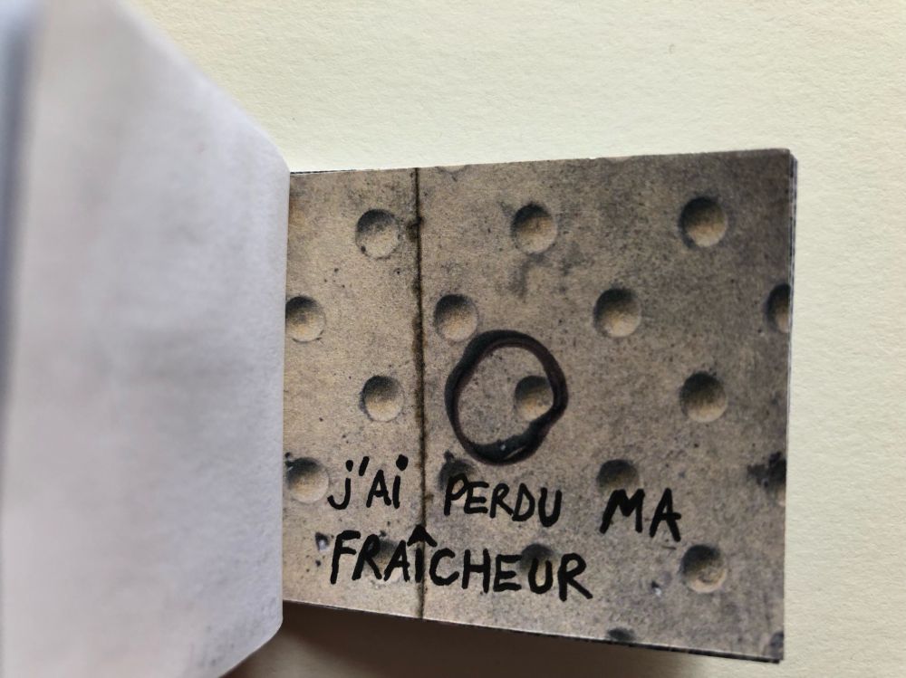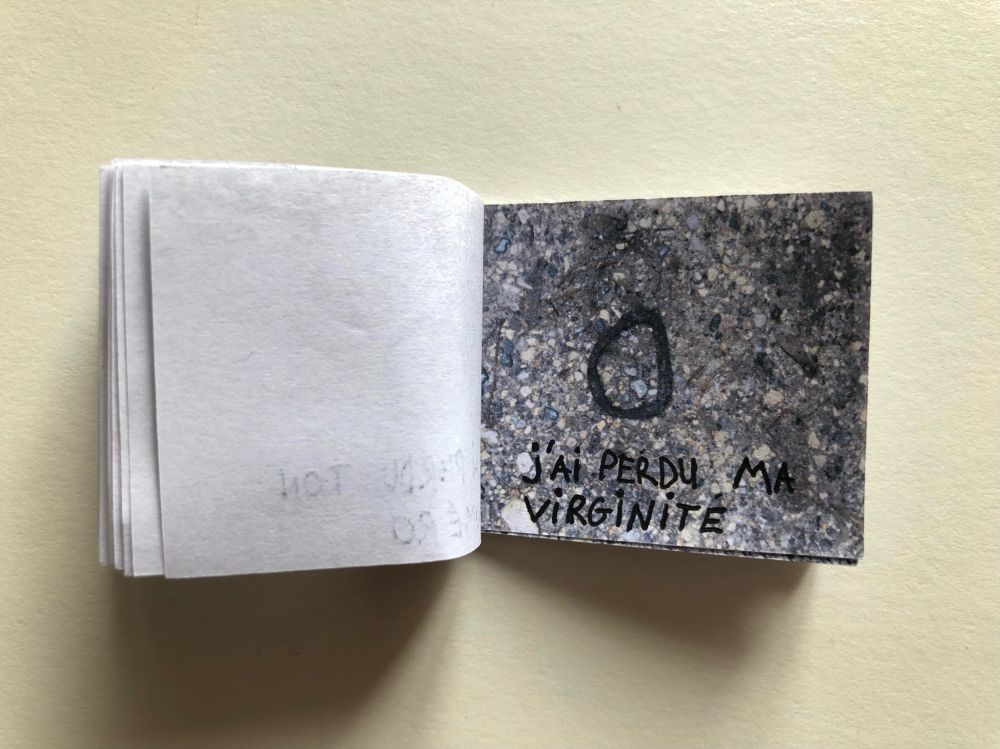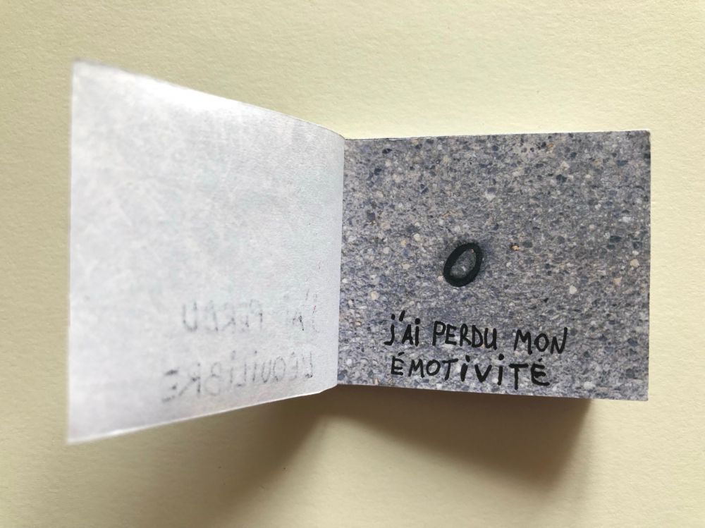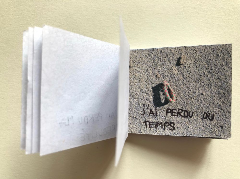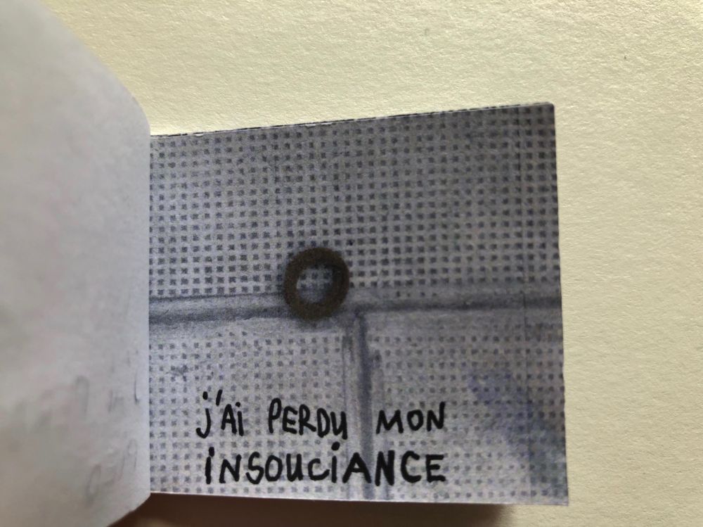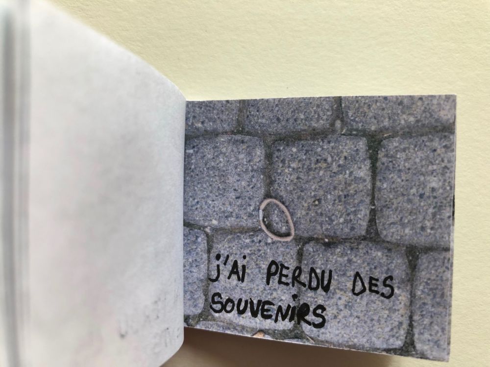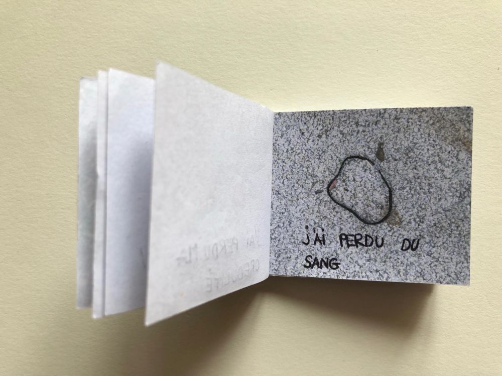 Cahier composé de 47 photographies reliées entre elles avec du fil et du scotch.