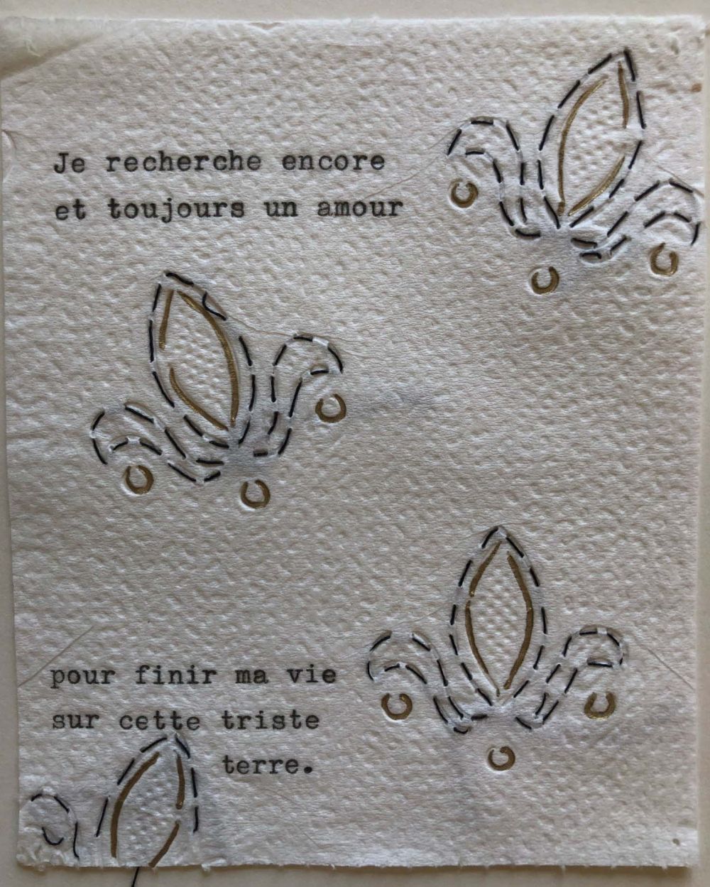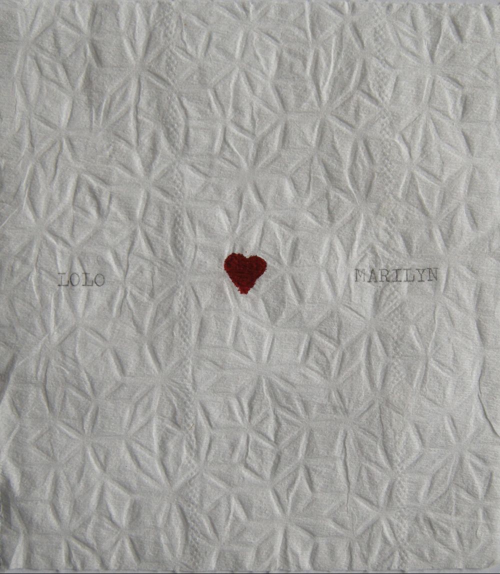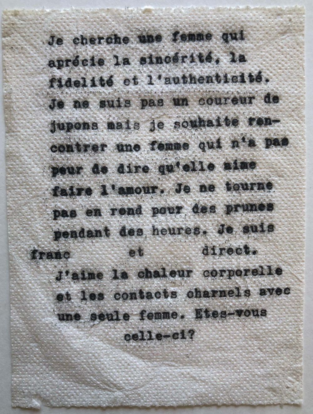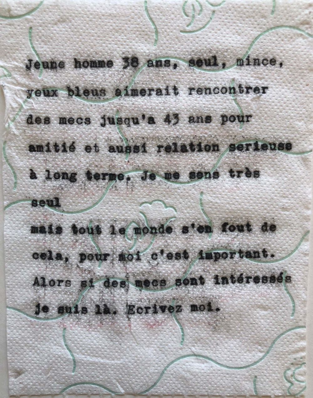 Des coupons de papiers toilette sur lesquels sont déposés des mots d'amour: dictons, petites annonces, chansons.