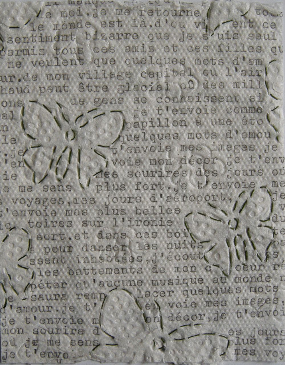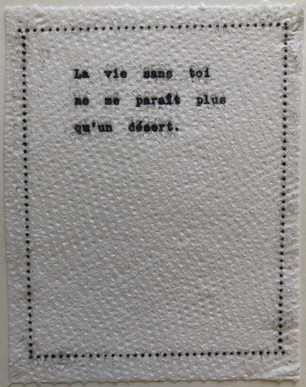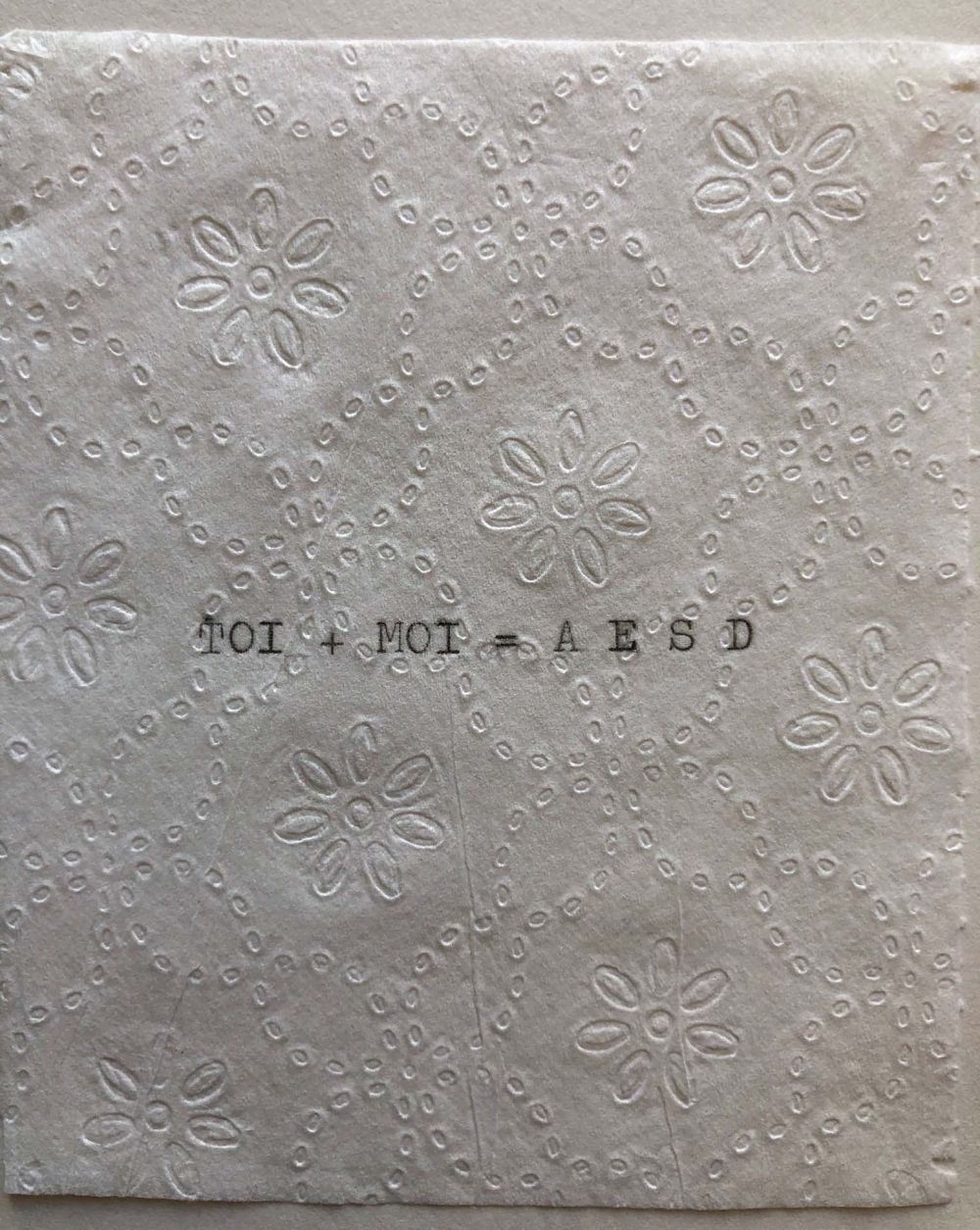 Des coupons de papiers toilette sur lesquels sont déposés des mots d'amour: dictons, petites annonces, chansons.