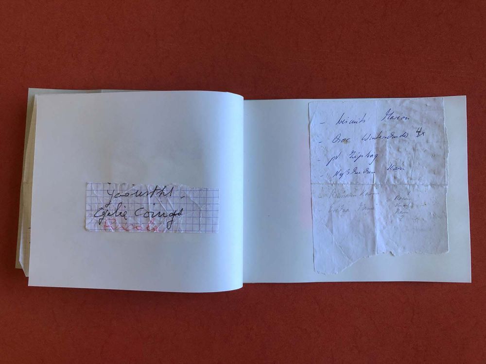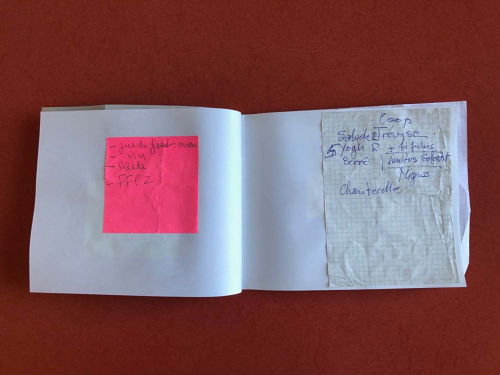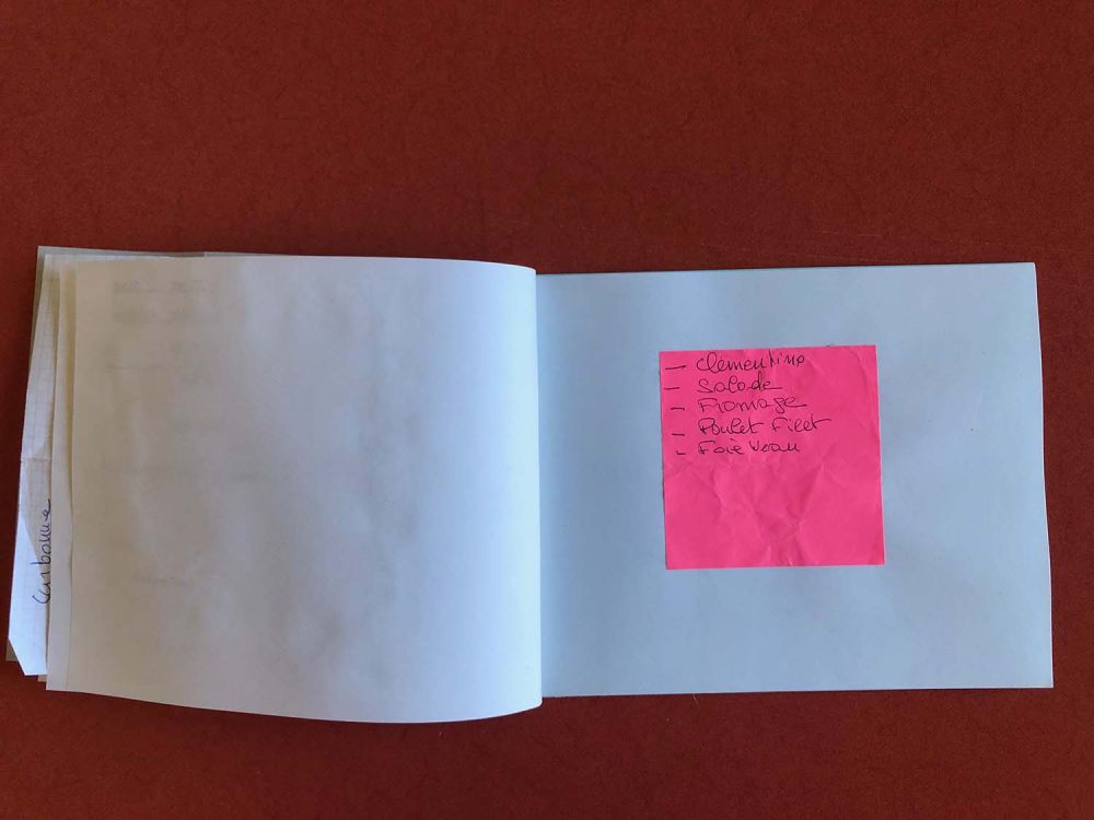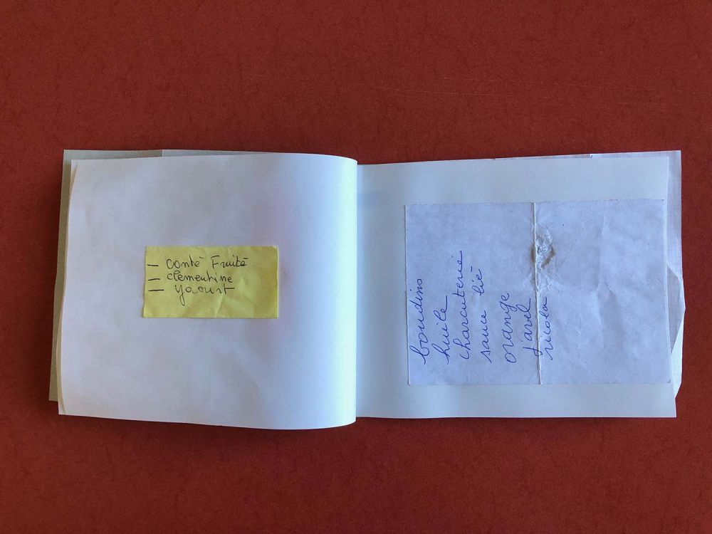 À partir de différentes listes de courses trouvées, j'ai confectionné un cahier de 23 pages. L'ensemble des pages n'est pas présenté ici.