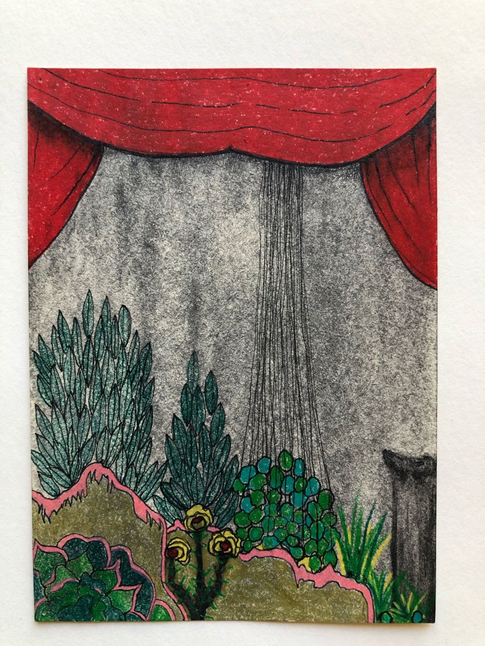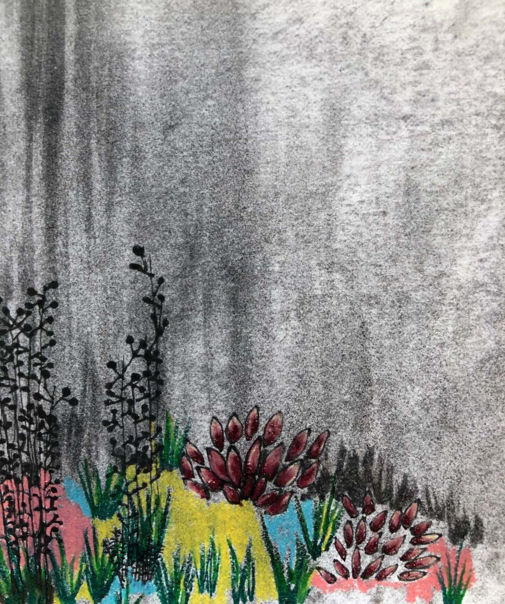 Feutres, crayons de couleur, fusain.